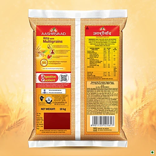 Aashirvaad Multigrain Atta offers the perfect balance of health and taste. Expertly crafted with carefully selected grains, this high-quality atta ensures superior dough that absorbs more water, resulting in soft, smooth, and tasty rotis. Made with precision and care, it delivers consistent texture, rich flavour, and a wholesome eating experience for everyday meals.