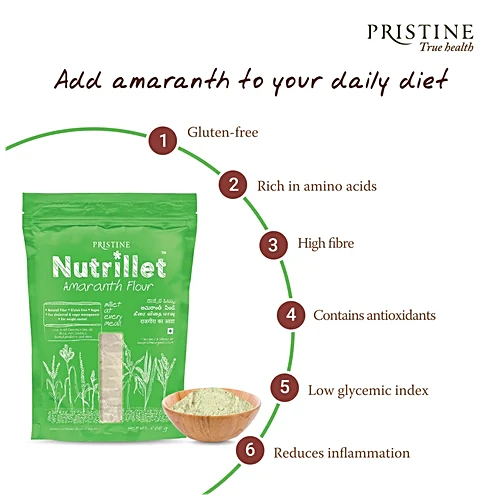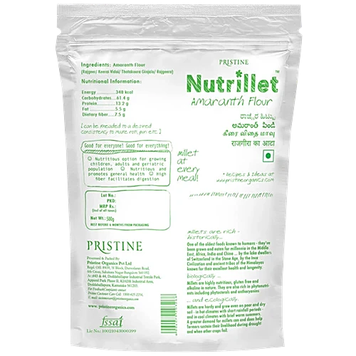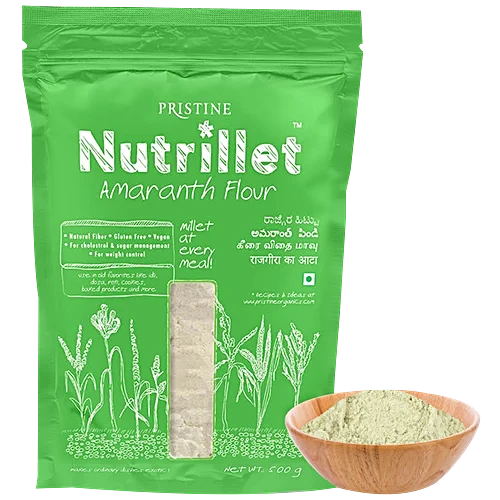 Amaranth Flour is a 100% natural and nutritious flour made from high-quality amaranth seeds. Rich in essential minerals like iron and magnesium, along with vitamins A, B, and C, it supports a healthy and balanced diet. This wholesome flour is perfect for making soft rotis, fluffy pancakes, and other delicious meals. Free from preservatives, it offers a pure and healthy choice for everyday cooking. Quick and easy to prepare, it is an ideal option for a nutritious breakfast or light meals.