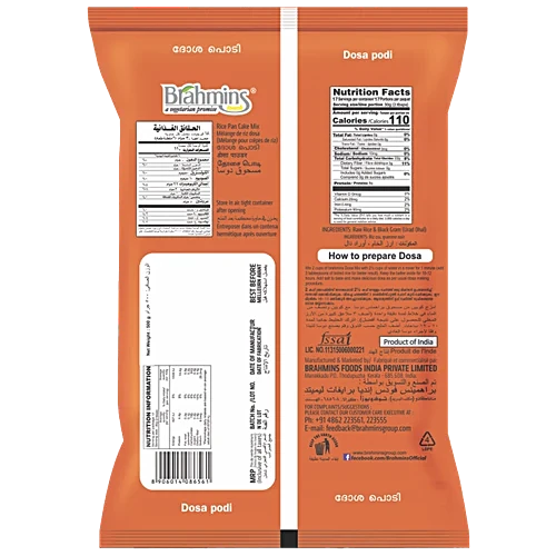 Brahmins Idli Podi is a traditional South Indian spice mix crafted to enhance the taste of idli and dosa. Made using high-quality natural ingredients, this flavorful podi delivers a perfect balance of taste and nutrition. A staple in South Indian breakfasts, it complements one of the world’s most nutritious meal options. Hygienically processed and packed in advanced facilities, Brahmins ensures freshness, authentic flavor, and no artificial additives in every pack.