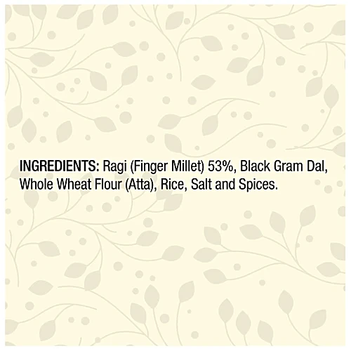 Ragi (Finger Millet) 60%, Rice, Black Gram Dal, Refined Wheat Flour, Bengal Gram Dal, Salt, Spices