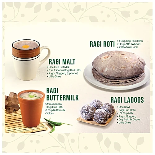 Ragi Huri Hittu is a nutritious roasted finger millet flour rich in calcium, iron, and dietary fibre. Made using natural processes without any additives or preservatives, it supports healthy digestion and overall wellness. Ideal for preparing traditional drinks and recipes, this wholesome ragi mix offers both great taste and nutrition for everyday consumption.