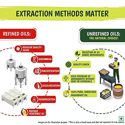 • This cold-pressed groundnut oil is good for your well-being as it is cholesterol-free